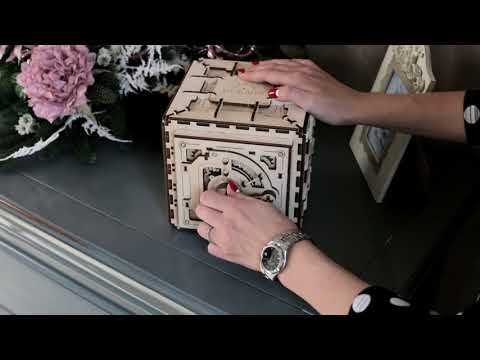 Our UGEARS model Safe is fully functional, with a 3 digit combination lock. A safe built by your own hand always feels safer than those that are bought. Perfect for safely storing smaller, precious items, or just for hiding personal items (such as chocolate!).