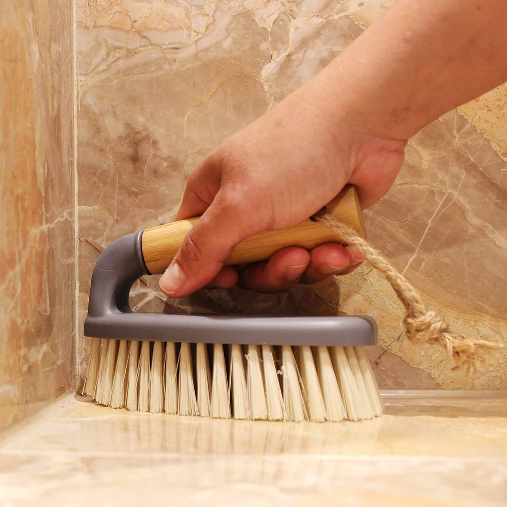Make cleaning tile and grout in the bathroom easy with the Eco Basics Bathroom Brush. The ergonomic design is made from bamboo, recycled plastic, stiff recycled nylon bristles and a hemp loop. The triangular head makes cleaning flat, curved or corner areas in the bathroom easy.