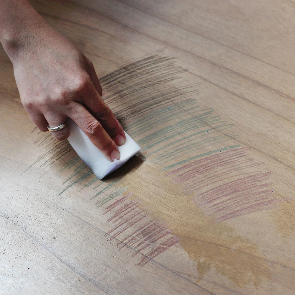 The Original and best eraser sponge for removing stubborn marks from most smooth non-porous surfaces. The eraser sponge is a highly abrasive eraser that uses mechanical force to clean with only water. Not recommended for surfaces that are polished/glossy or on finishes hat are brushed, stained or dark. Spot test on all surfaces before use to ensure no discolouration.